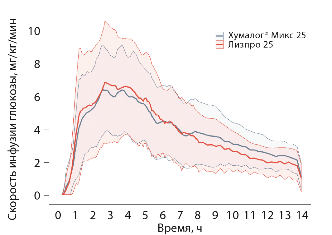 Assessment the equivalence of the bioanalogue insulin lizpro biphasic 25 (Geropharm-bio, Russia) and Humalog® Mix 25 (Lilly France, France) using the euglycemic hyperinsulinum clamp method on healthy volonters