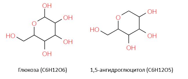 Рис. 1. Молекулярная структура глюкозы и 1,5-ангидроглюцитола.
