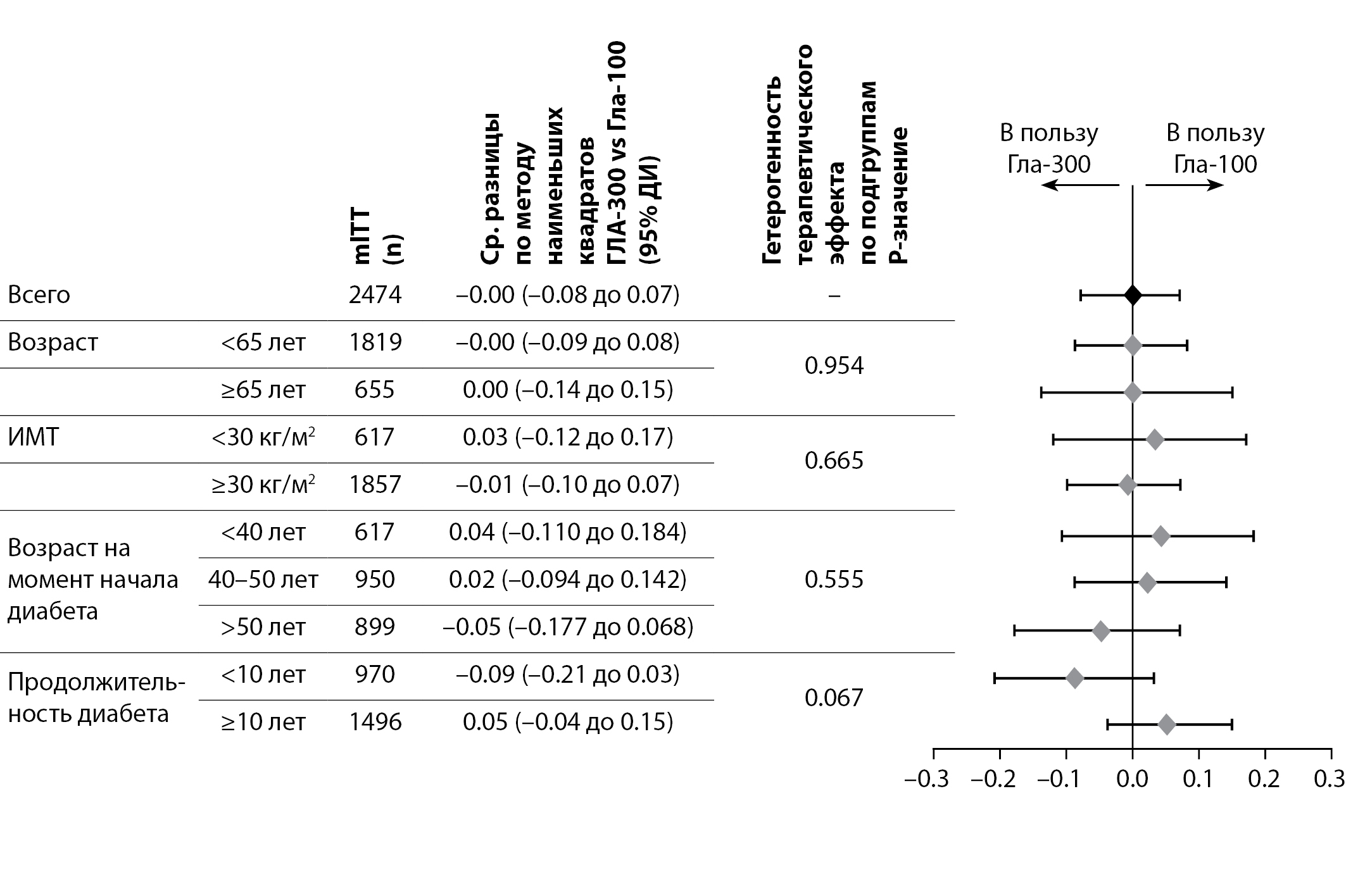 1. Fig. 1. Reduced glycated hemoglobin [%] in people with type 2 diabetes within 6 months of treatment by subgroup (mITT population; pooled data from EDITION 1, 2 and 3). * Duration of diabetes is not available for 8 participants. BMI - body mass index; DI - confidence interval; mITT is the “modified intention to treat” population (the population includes data from all patients for whom the drug was prescribed at least once, and for whom the data of at least one follow-up visit was known). | |