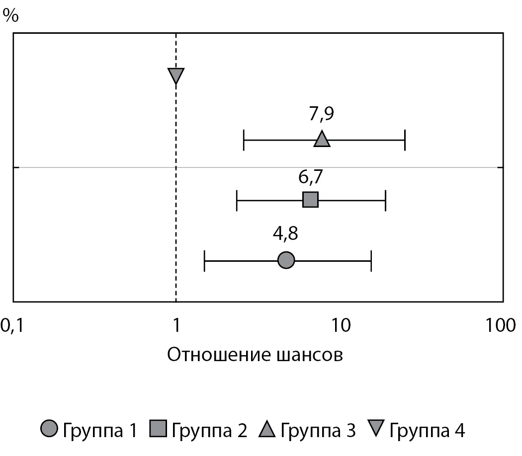 Примечание: *— для статистического анализа был использован критерий χ2 для качественных признаков. ОШ — отношение шансов.