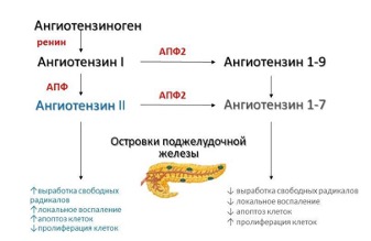 Рис. 2. Механизм протективного воздействия ангиотензинпревращающего фермента типа 2 на панкреатические β-клетки [25].