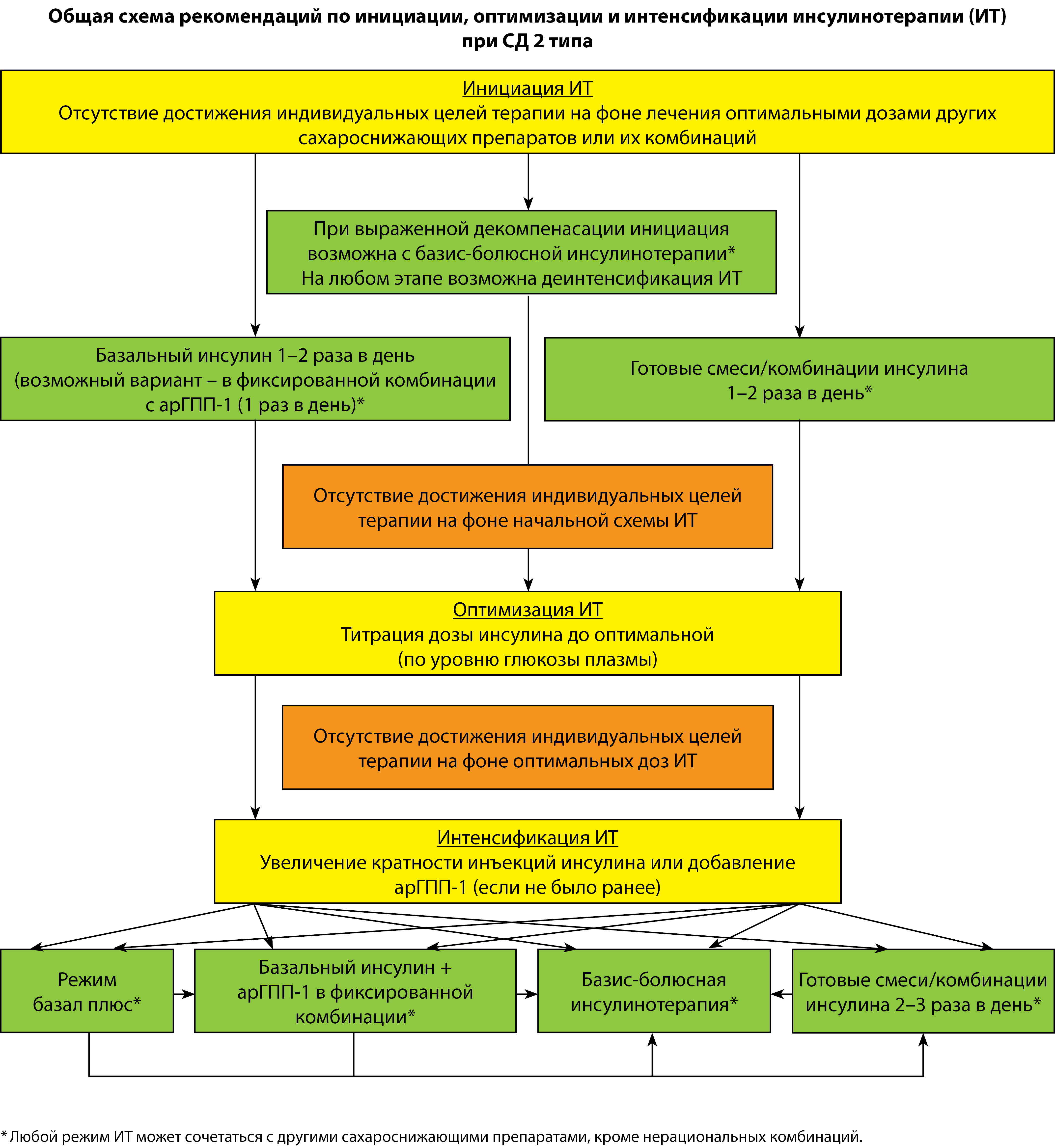 3. Общая схема рекомендаций по инициации, оптимизации и интенсификации инсулинотерапии (ИТ) при СД 2 типа