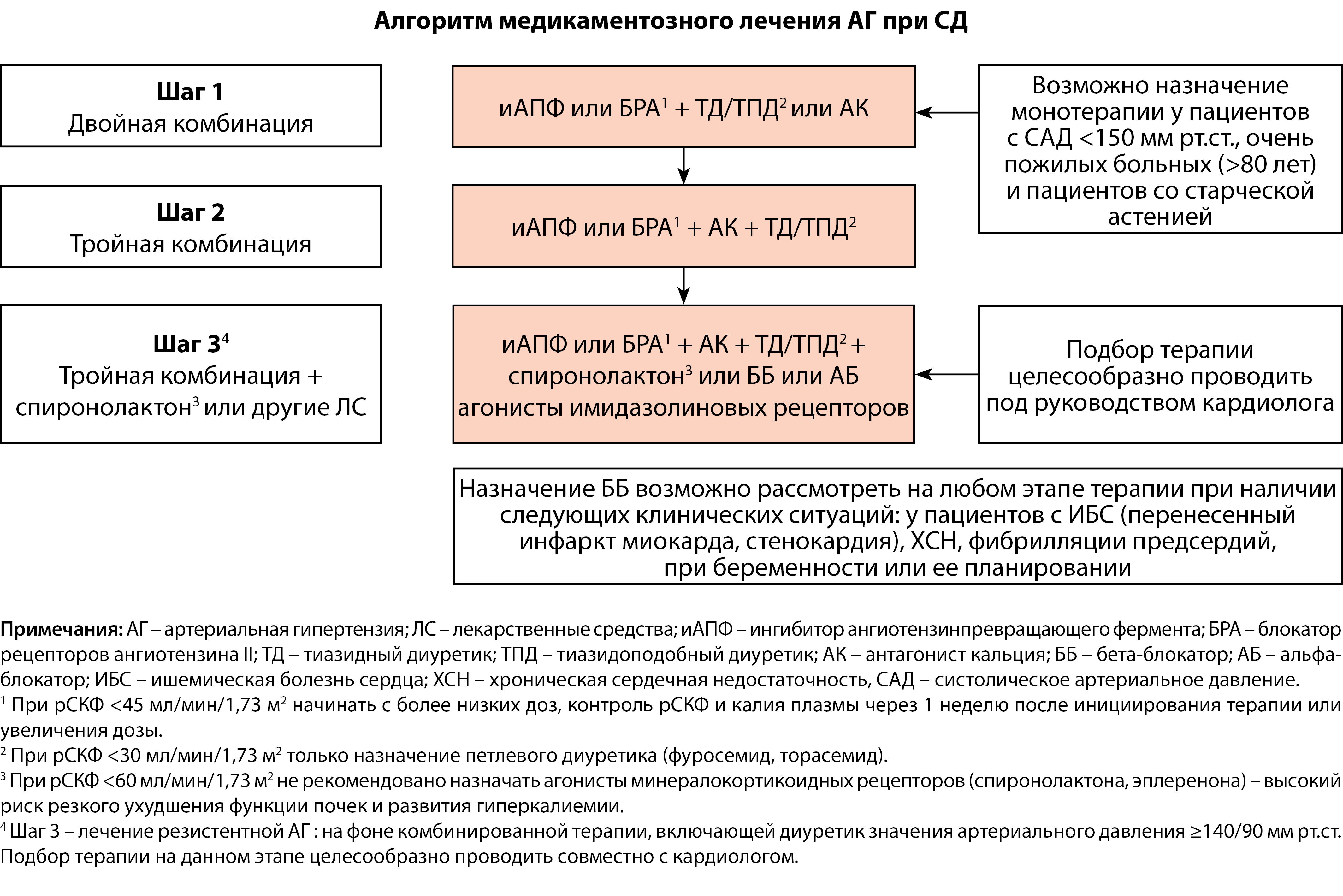 13. Алгоритм медикаментозного лечения АГ при СД