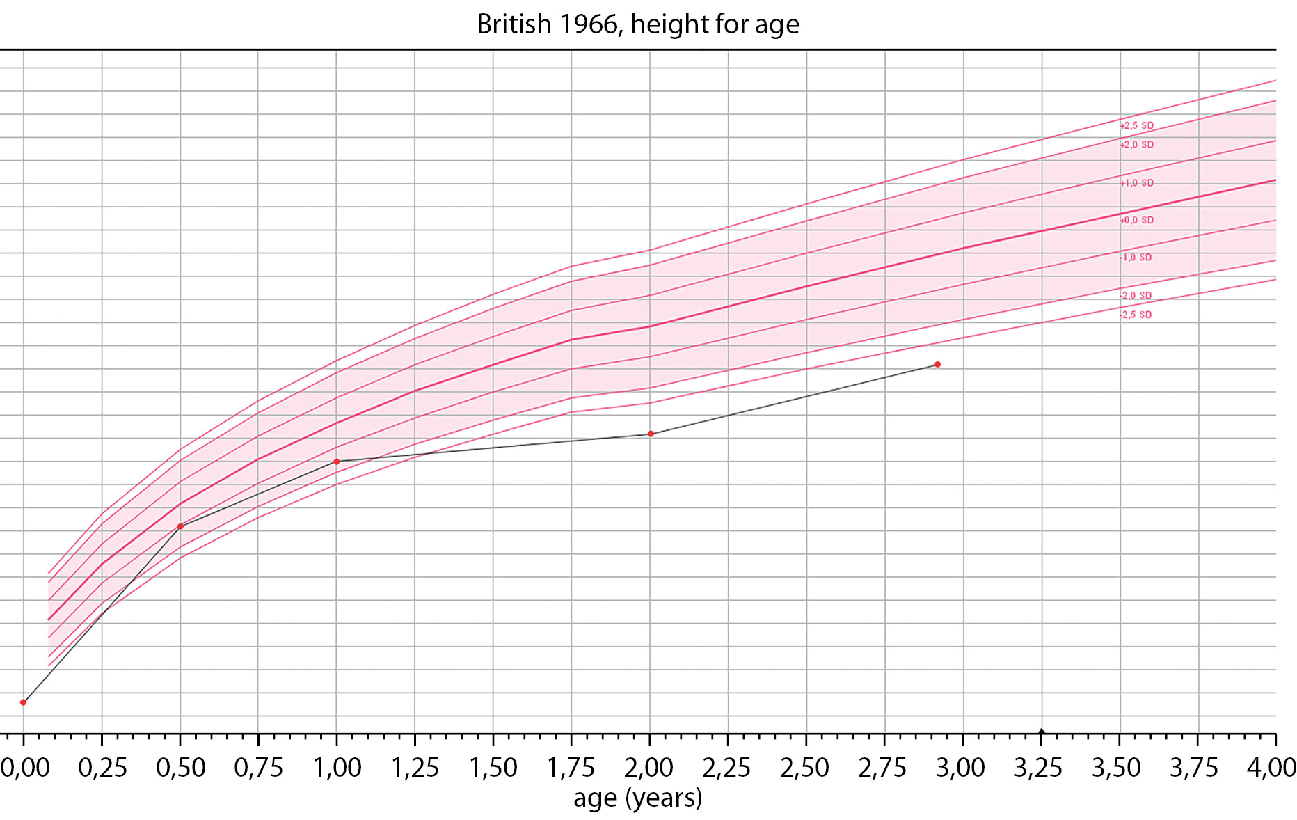 С 11–12 мес жизни родители отметили снижение темпов роста (рис. 1).