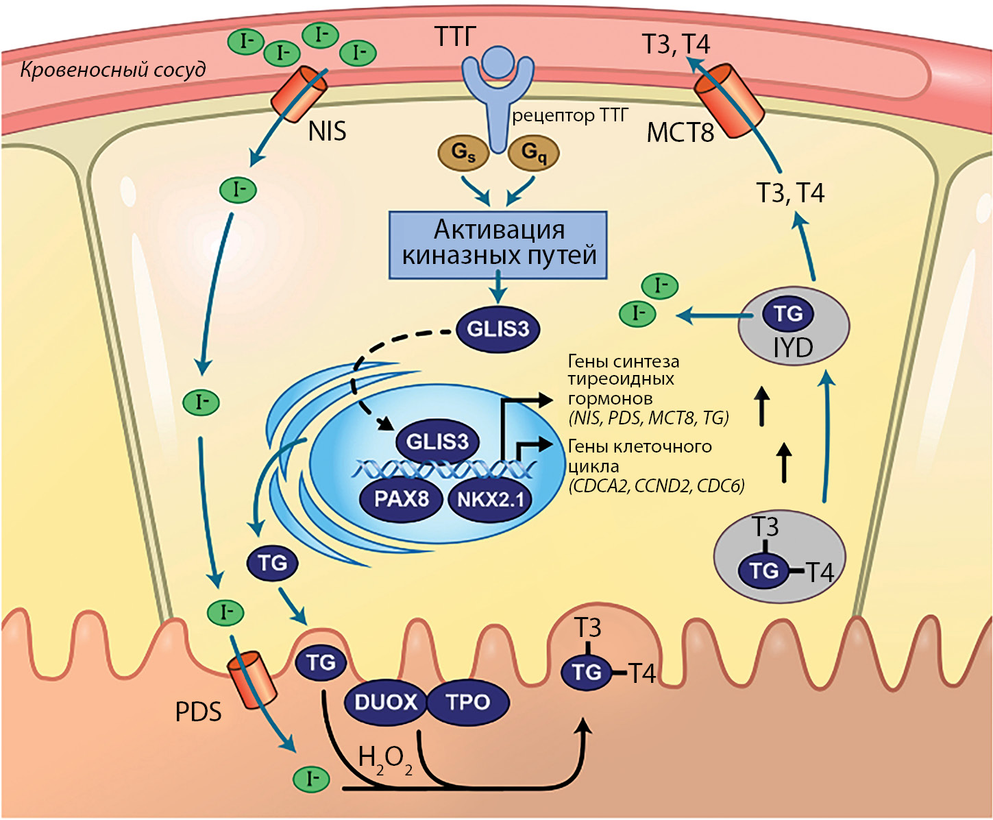 Рисунок 3. Роль GLIS3 в биосинтезе тиреоидных гормонов