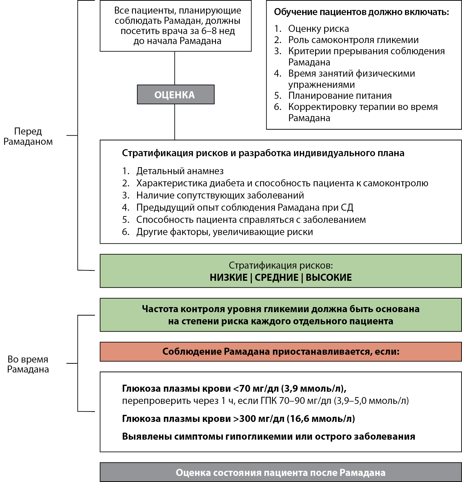 4. Рисунок 4. Блок-схема ведения пациентов с сахарным диабетом, решивших поститься во время месяца Рамадан. Адаптировано из [25].