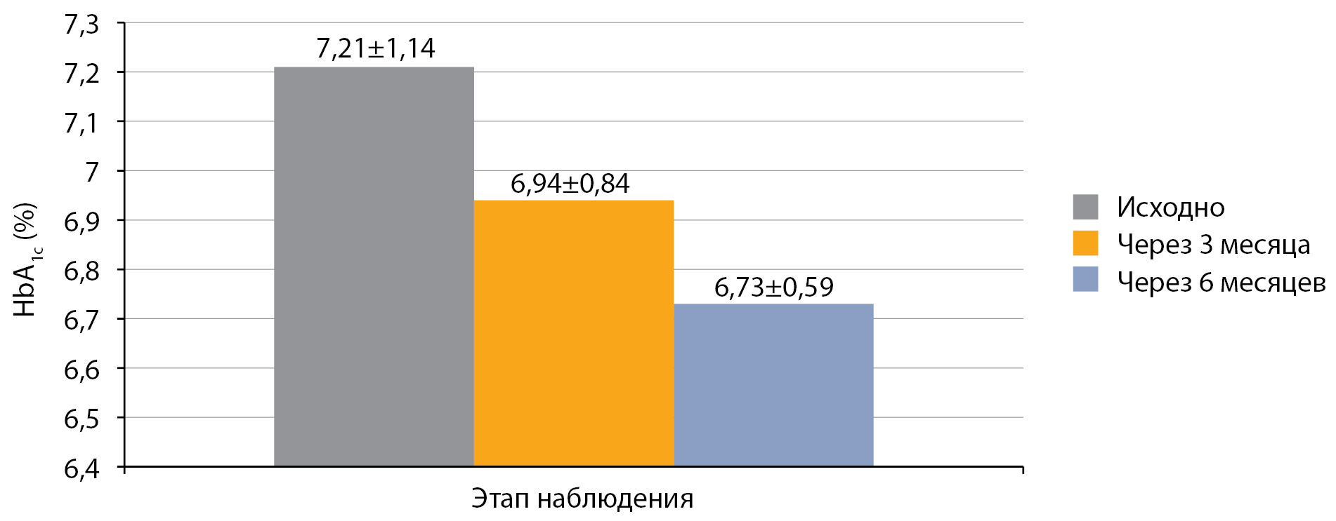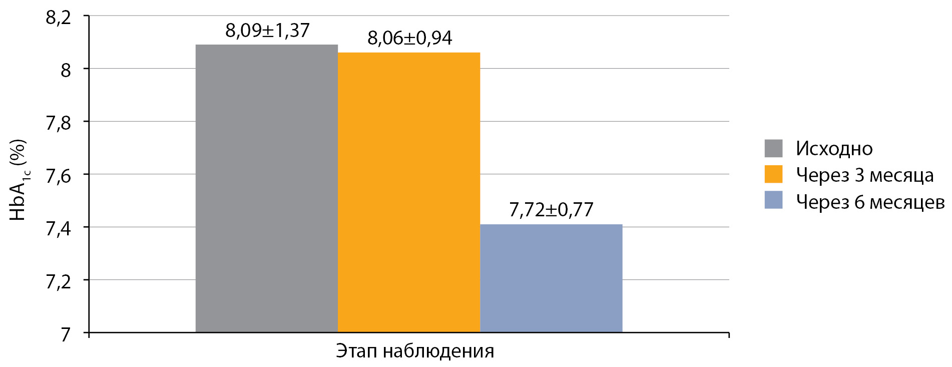 Рисунок 3. Динамика HbA1c после перевода на РинФаст®