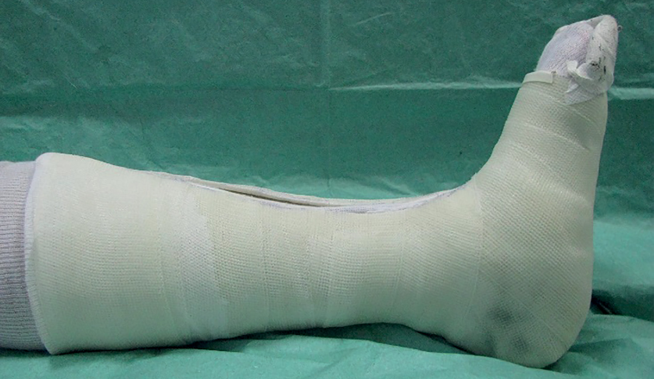 4. Рисунок 4. Вид стопы в индивидуальной разгрузочной повязке Total Contact Cast.