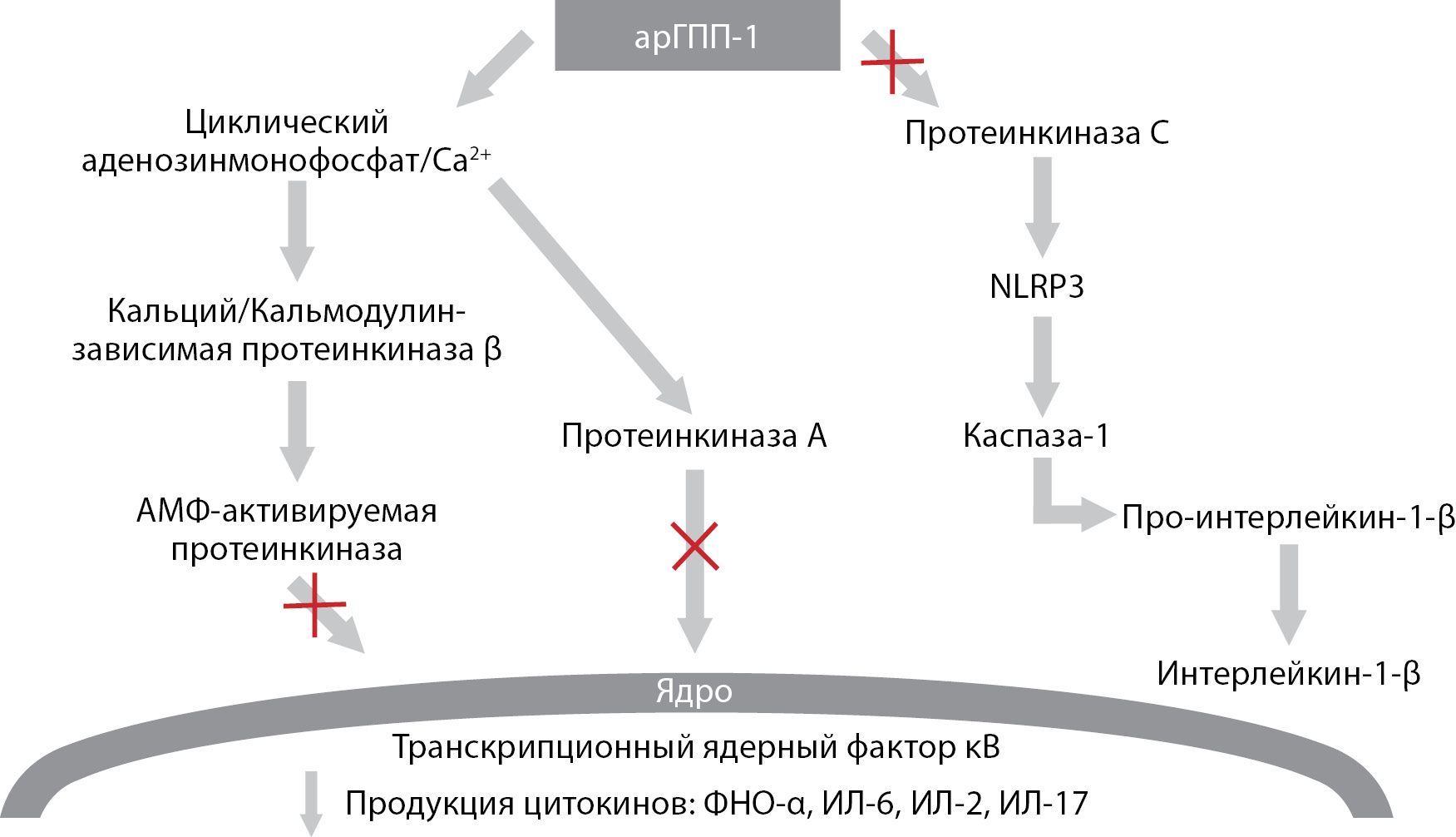 АрГПП-1, связываясь с рецептором ГПП-1, блокирует протеинкиназу С