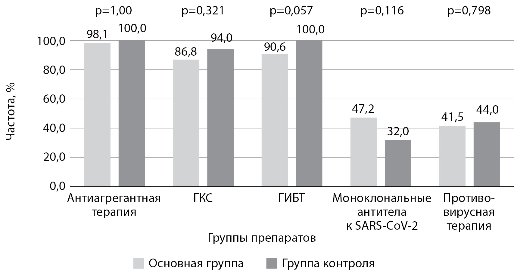 Все пациенты получали лечение согласно актуальным временным методическим рекомендациям по профилактике, диагностике и лечению COVID-19.
