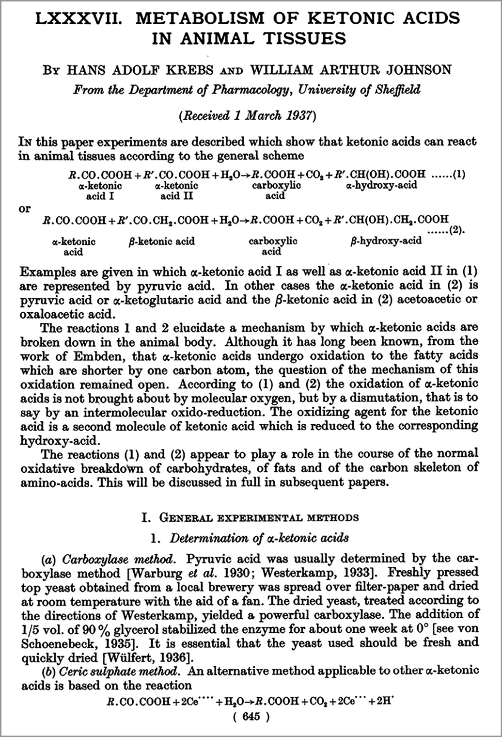 11. Krebs HA, Johnson WA. Metabolism of ketonic acids in animal tissues. Biochem J. 1937;31(4):645-660. doi: https://doi.org/10.1042/bj0310645