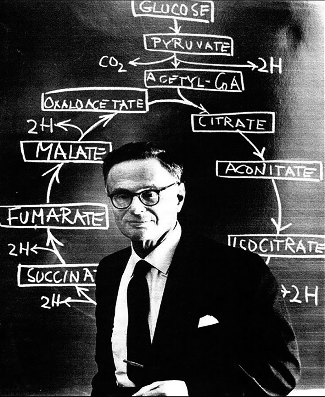 Главная роль в открытии цикла трикарбоновых кислот отводится немецко-английскому биохимику Хансу Адольфу Кребсу (25.08.1900–22.11.1981), в честь которого эта цепочка и получила свое название. Однако, как известно, открытия зачастую не совершаются в одиночку — им предшествует большая работа коллег-ученых, проделанная ранее и положившая основу для этого открытия. Итак, прежде чем раскрывать историю изучения цикла самим Кребсом, хотелось бы рассказать и о тех, кто внес не менее важный вклад в изучение ключевых компонентов цикла.