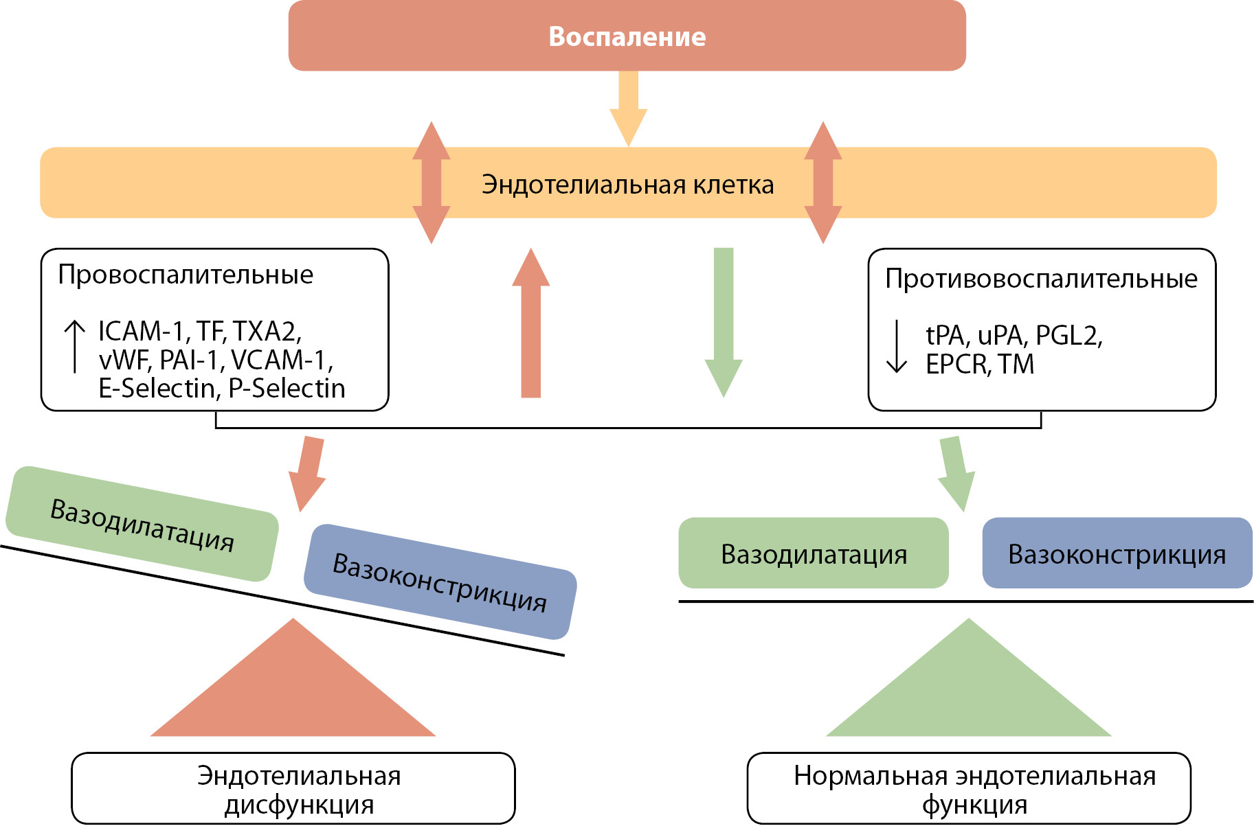 Механизмы дисфункции эндотелиальных клеток, связанные с воспалением, представлены на рис. 1.
