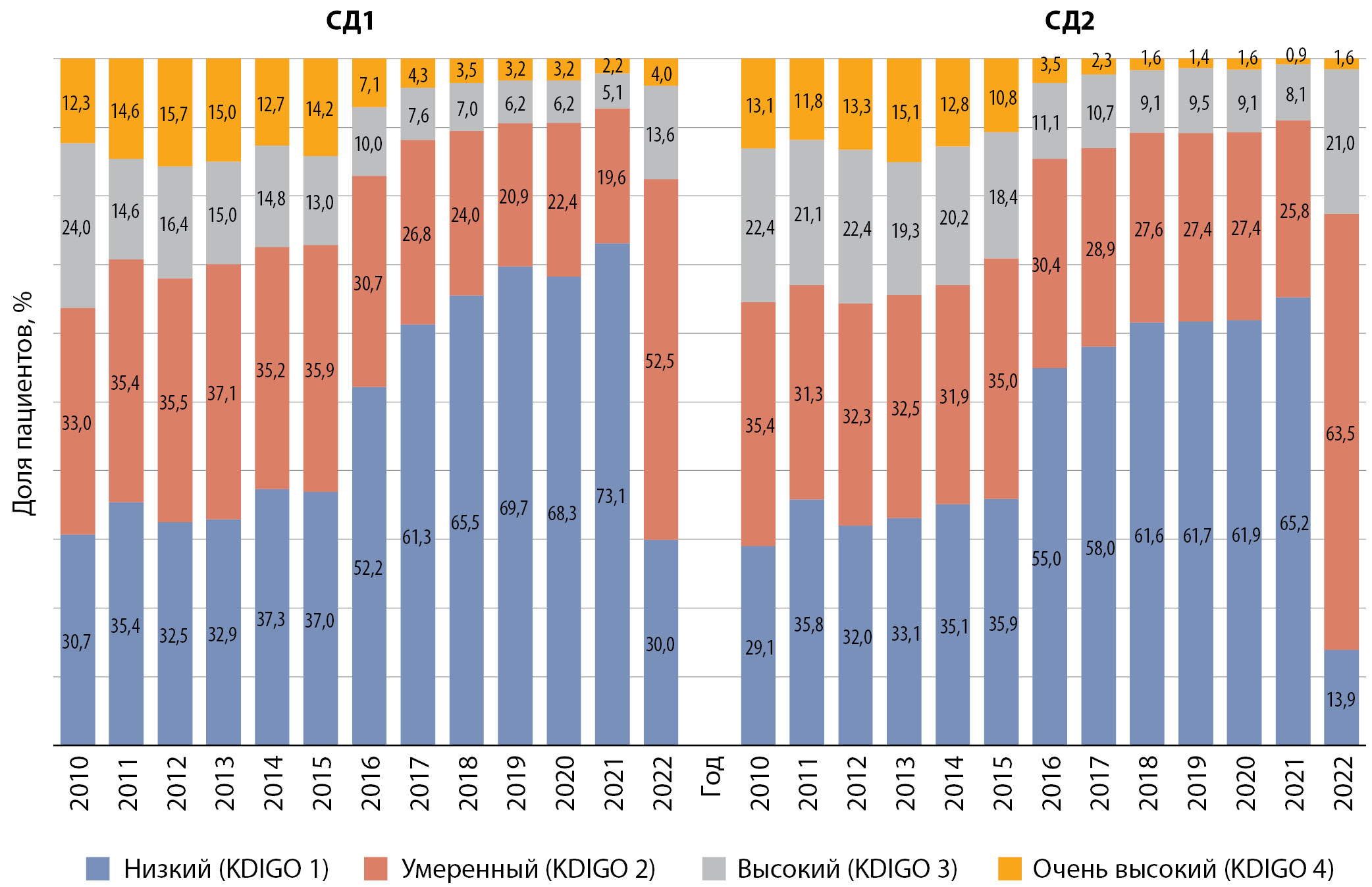 Эпидемиология хронической болезни почек у пациентов с диабетом в Российской Федерации по данным Федерального регистра сахарного диабета (2010–2022 гг.)