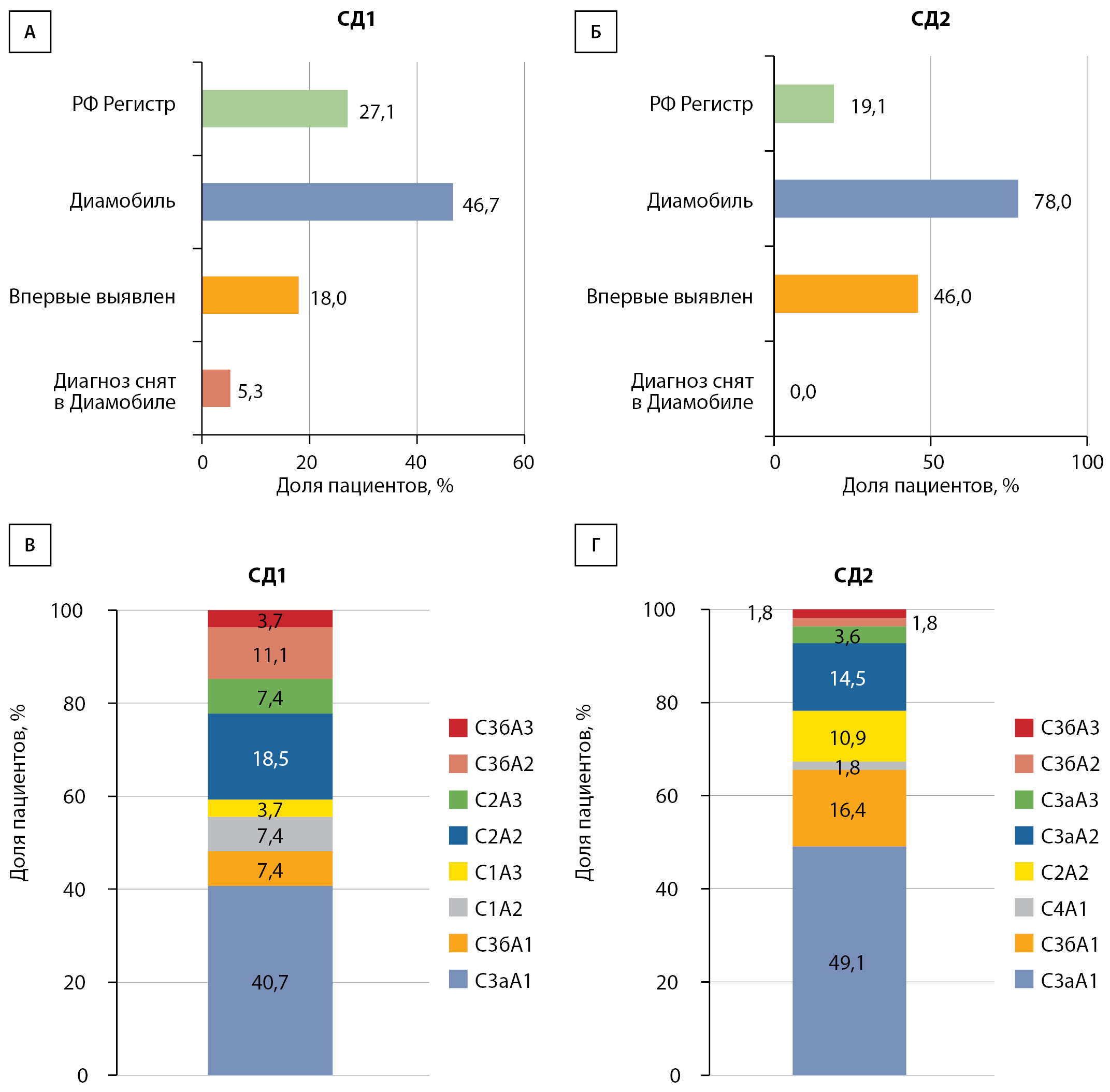 по данным регистра сахарного диабета и Диамобиля (рис. А и Б).