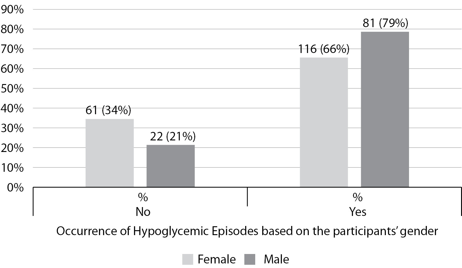 2. Рисунок 2. Связь между пережитыми эпизодами гипогликемии среди участников и их полом (N = 280). | |