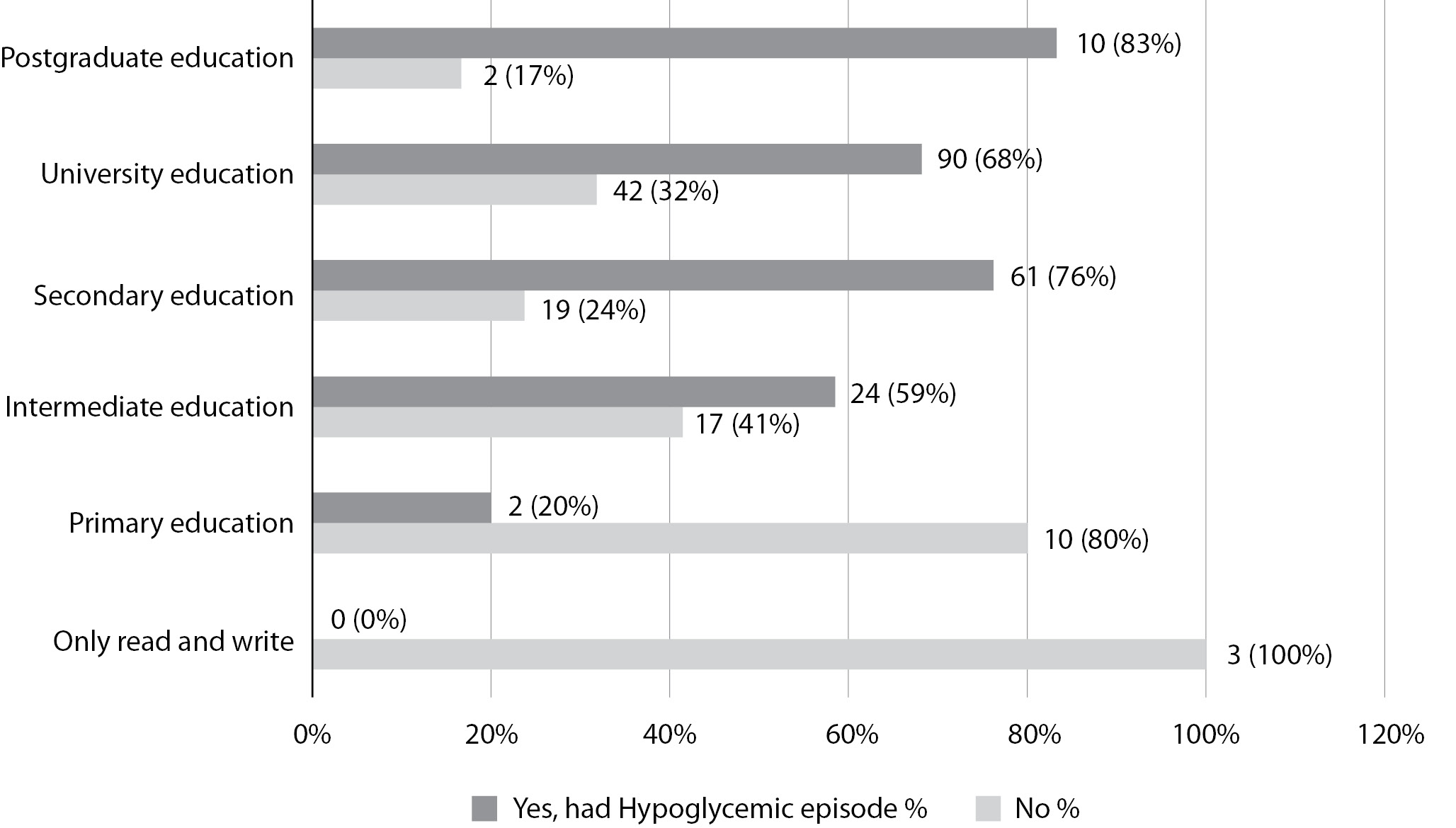 3. Рисунок 3. Опыт пережитых эпизодов гипогликемии в зависимости от уровня образования участников (N = 280). | |