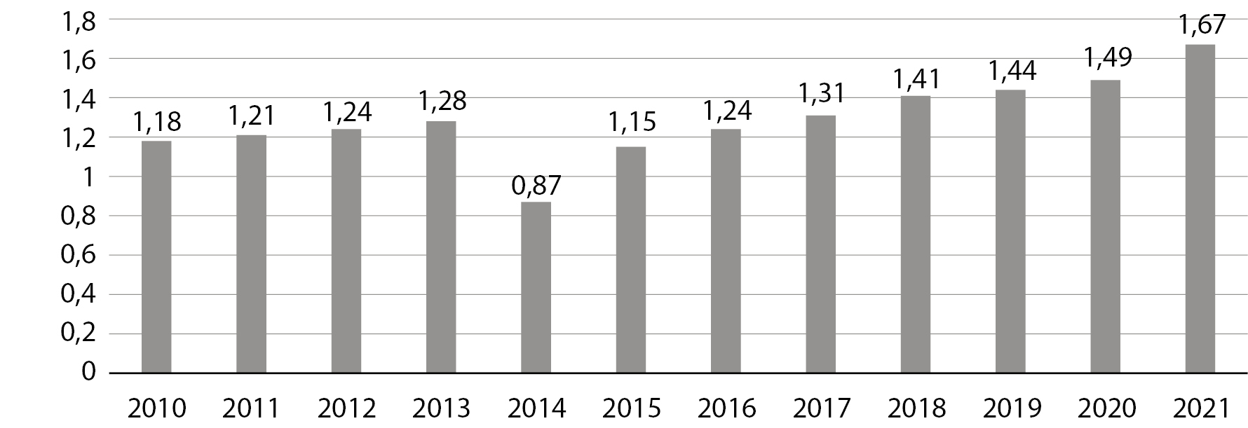 2. Рисунок 2. Заболеваемость сахарным диабетом 1 типа среди детей и подростков в Луганской Народной Республике (‰). | |