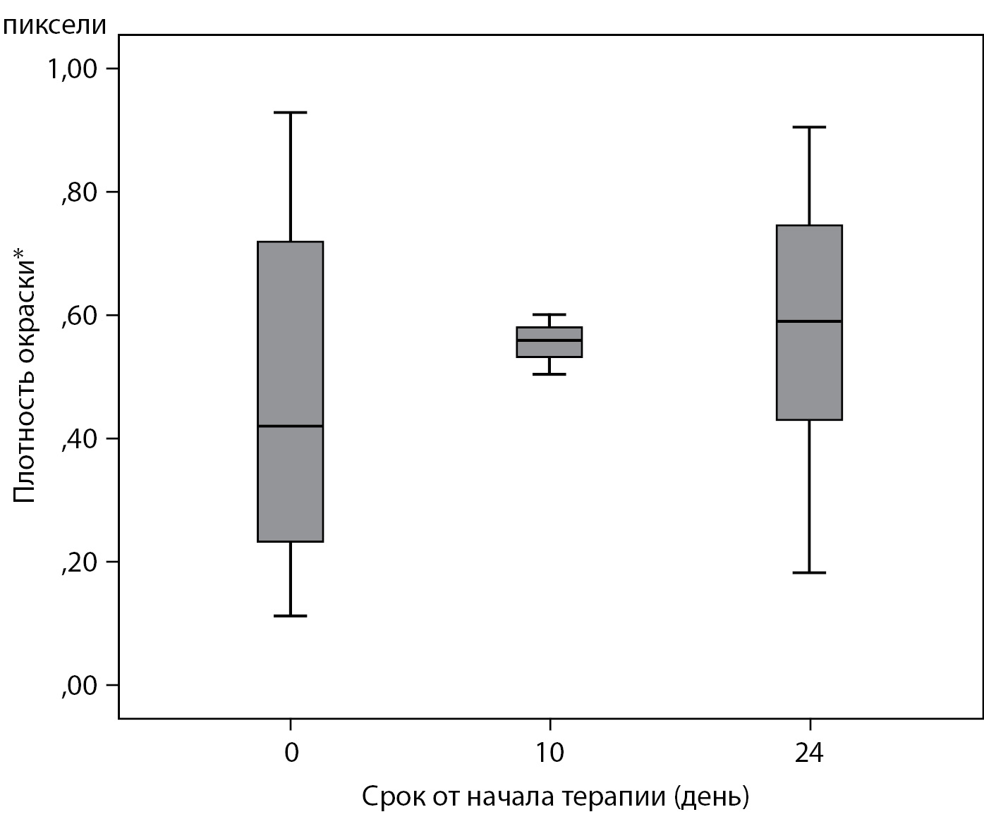 Рисунок 4. Плотность окрашивания образцов кожи на Ki-67, ANOVA, p=0,447.