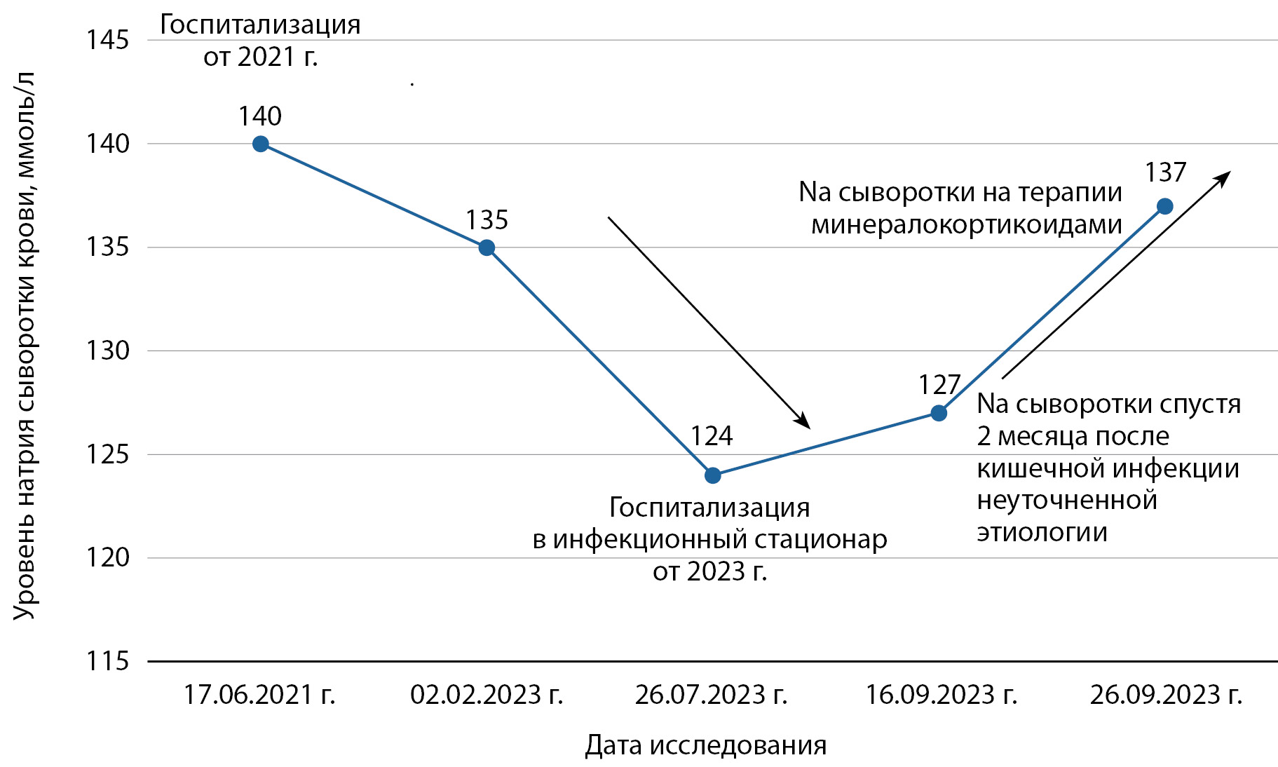 1. Рисунок 1. Динамика уровня натрия сыворотки.