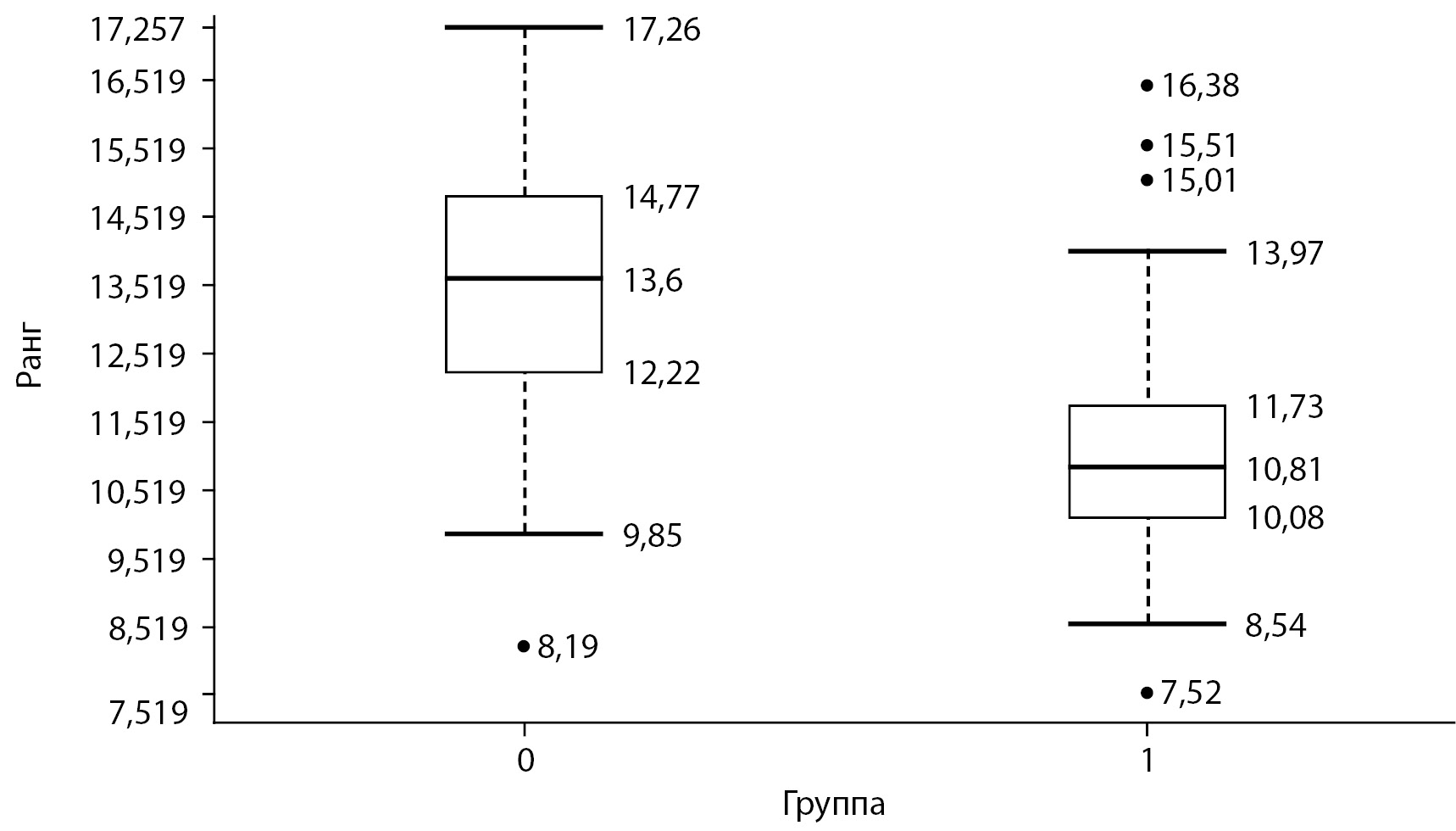 5. Рисунок 5. Ранг пациентов в группе ремиссии и ее отсутствия. | |