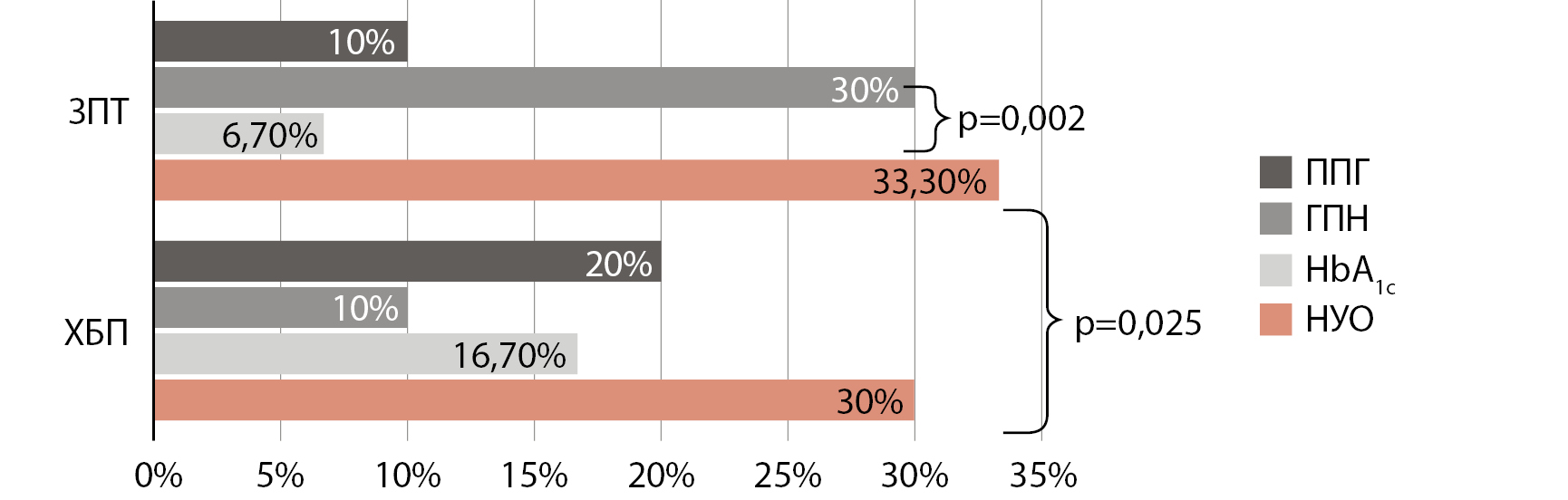 Таким образом, изучение влияния ХБП продвинутых стадий и ЗПТ на развитие НУО у пациентов без СД в анамнезе представляет практический и научный интерес.