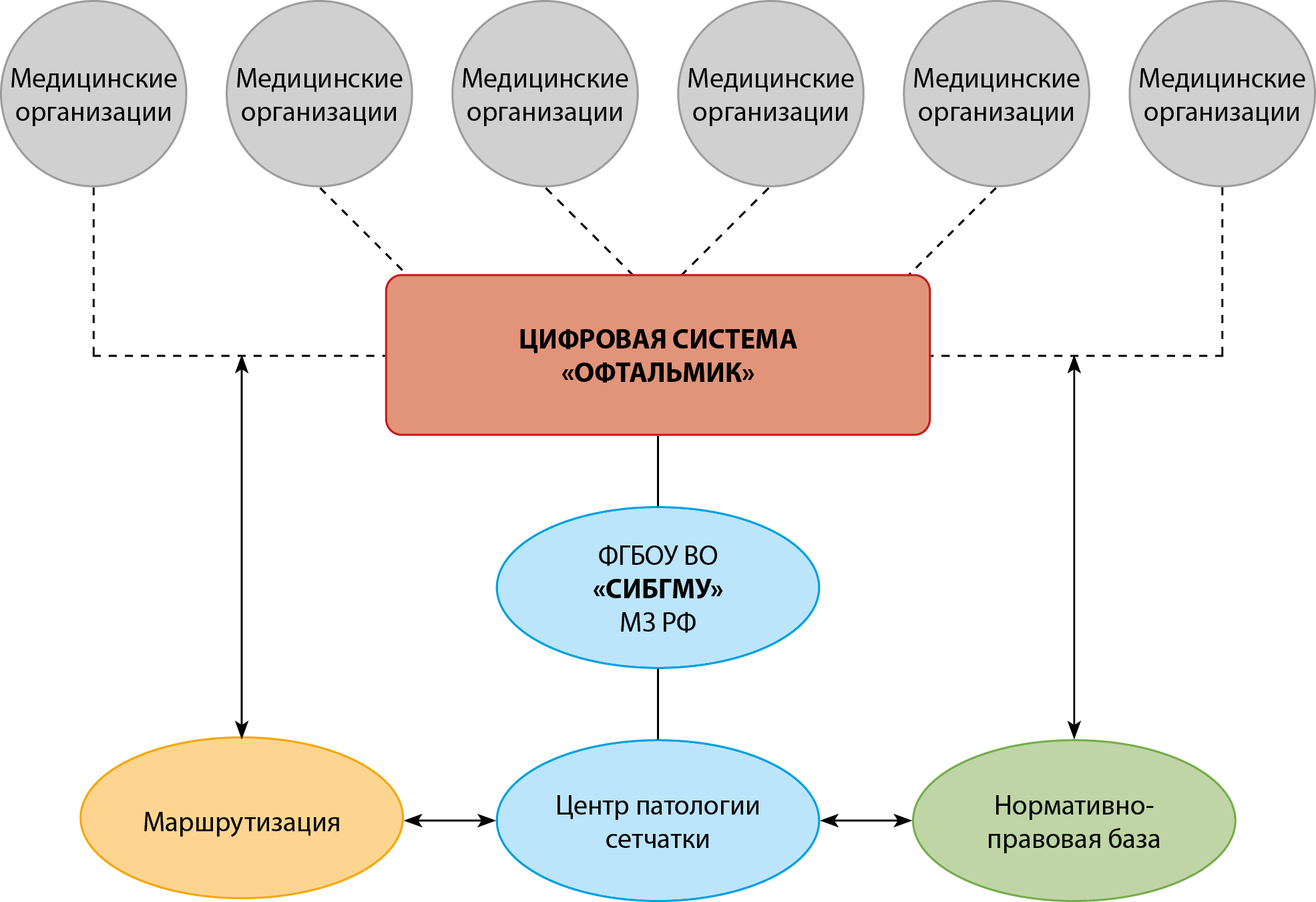 РЕЗУЛЬТАТЫ. Ключевое условие организации цифровой системы скрининга на ДР в субъекте — создание Центра патологии сетчатки, основная цель которого — профилактика слепоты и инвалидности по зрению в субъекте. Второе важное условие — разработка и внедрение телемедицинской системы со встроенной системой поддержки принятия врачебных решений, которая объединила в единый цифровой контур Центр патологии сетчатки и медицинские учреждения Томской области. Третье условие — адаптация маршрутизации пациентов с ретинопатией в действующую схему маршрутизации пациентов по профилю «офтальмология». Еще одним важным условием стала реализация пилотного проекта с целью адаптации цифровой структуры в существующую схему организации медицинской помощи по профилю «офтальмология» в регионе, определения медицинских организаций первой очереди, налаживания цифровой связи. Пятое — внесение изменений на законодательном уровне.