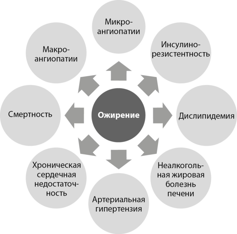 Ожирение ассоциировано с микро- и макрососудистыми осложнениями, нейропатией