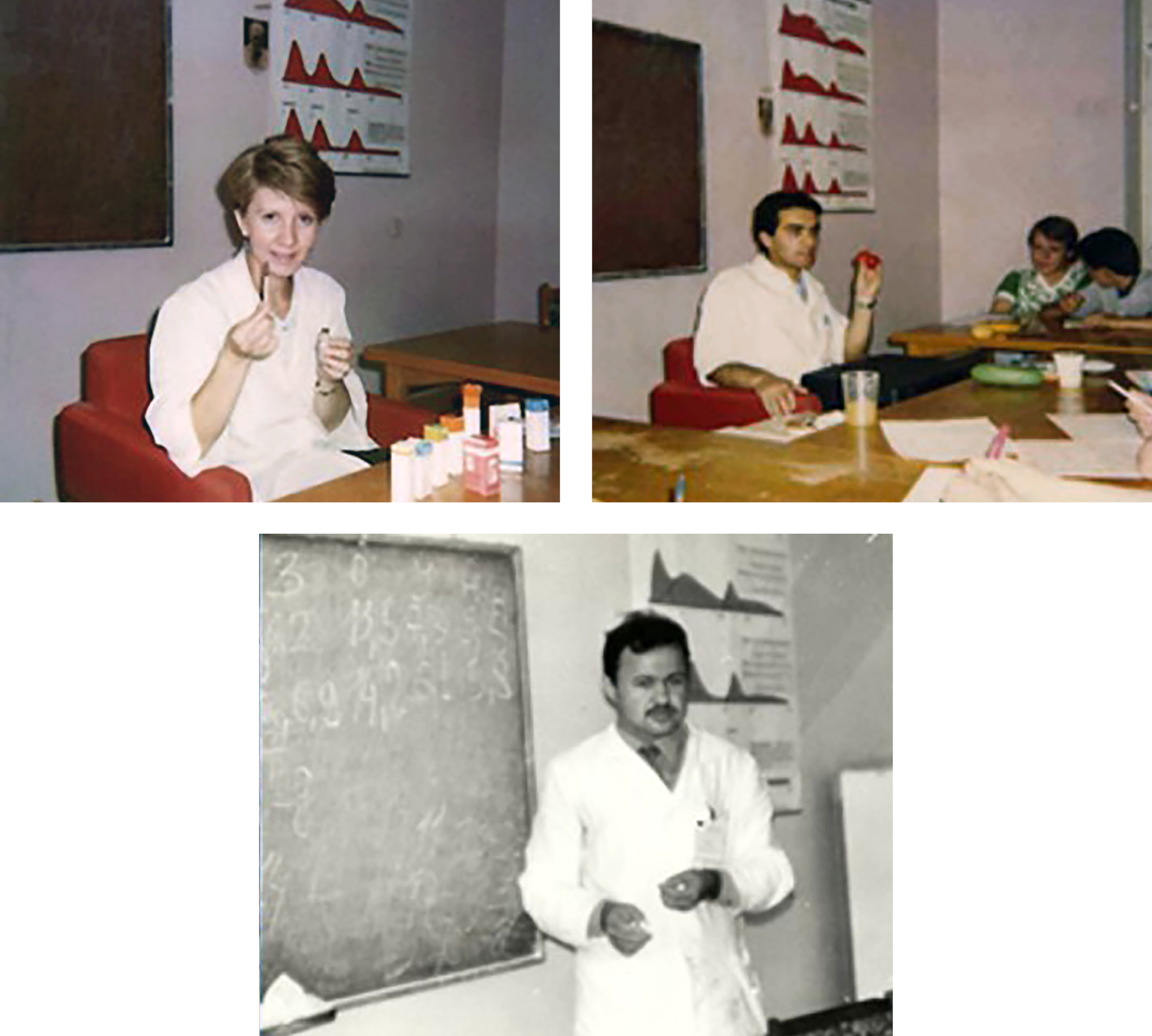 3. Рисунок 3. Сотрудники Всесоюзного эндокринологического научного центра АМН СССР на международном семинаре по терапевтическому обучению (слева направо): А.Ю. Майоров, Г.Р. Галстян, Ж.-Ф. Ассаль, Е.В. Суркова. | |