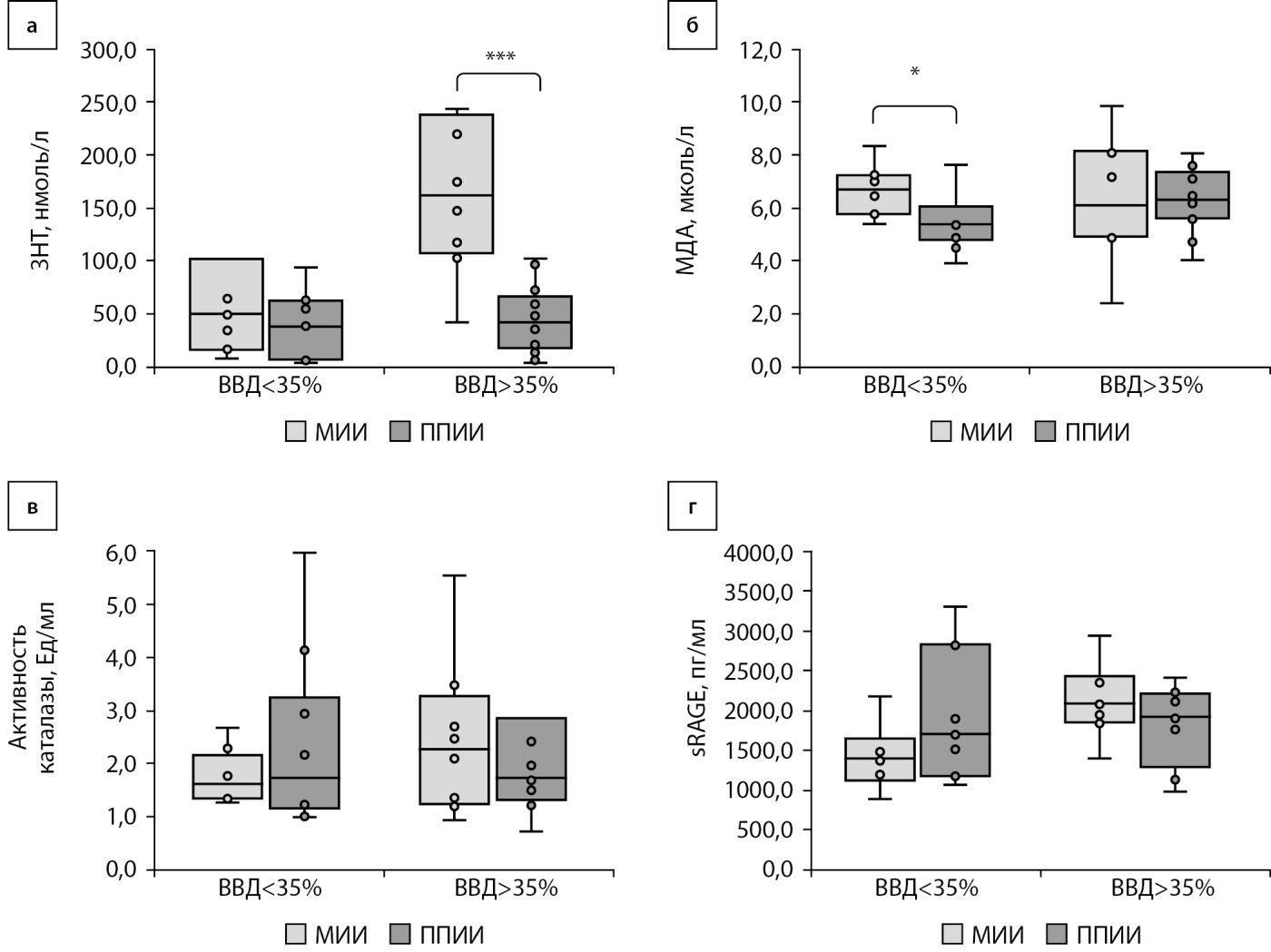 Примечание: sRAGE — растворимый рецептор конечных продуктов гликирования; 3НТ — 3-нитротирозин; ВВД — время выше целевого диапазона; МДА — малоновый диальдегид; МИИ — множественные инъекции инсулина; ППИИ — постоянная подкожная инфузия инсулина.