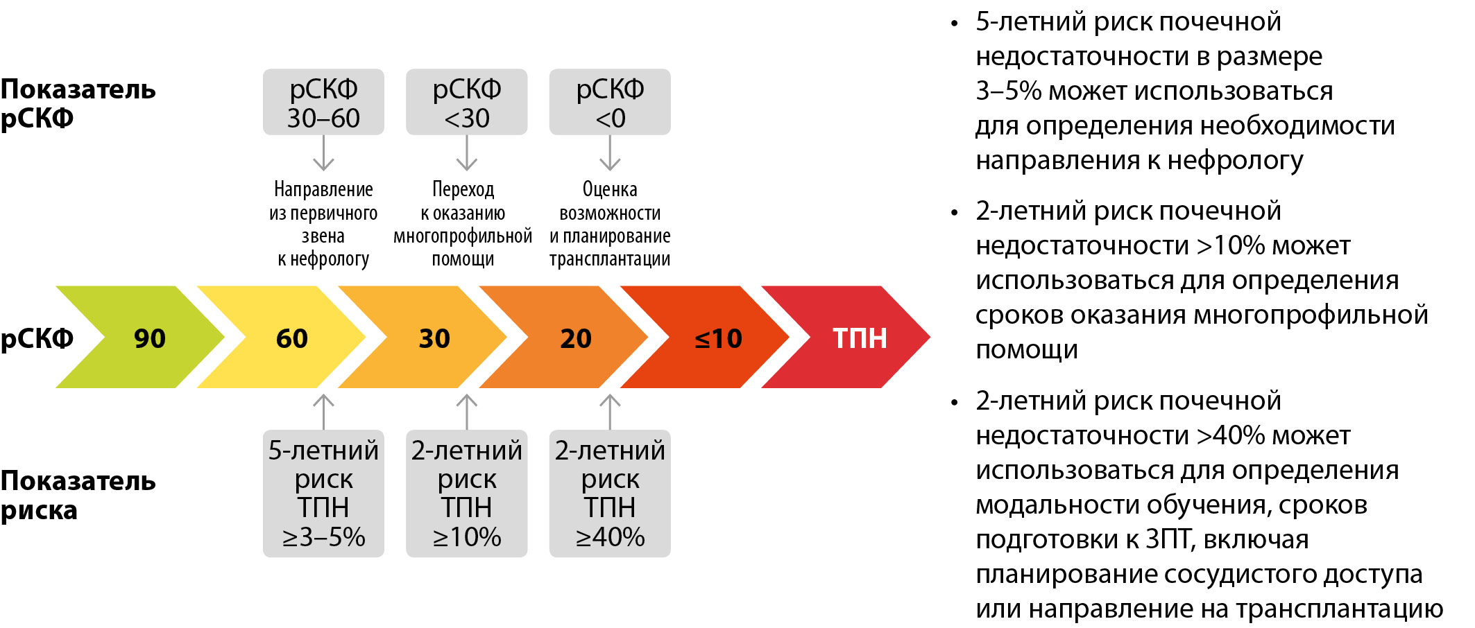 Примечание. рСКФ — расчетная скорость клубочковой фильтрации; ТПН — терминальная почечная недостаточность; ЗПТ — заместительная почечная терапия.