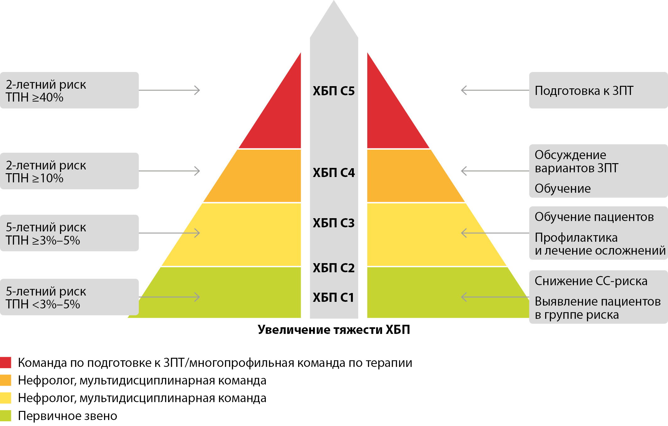 Примечание. ХБП — хроническая болезнь почек; ТПН — терминальная почечная недостаточность; ЗПТ — заместительная почечная терапия; СС-риск — сердечно-сосудистый риск.