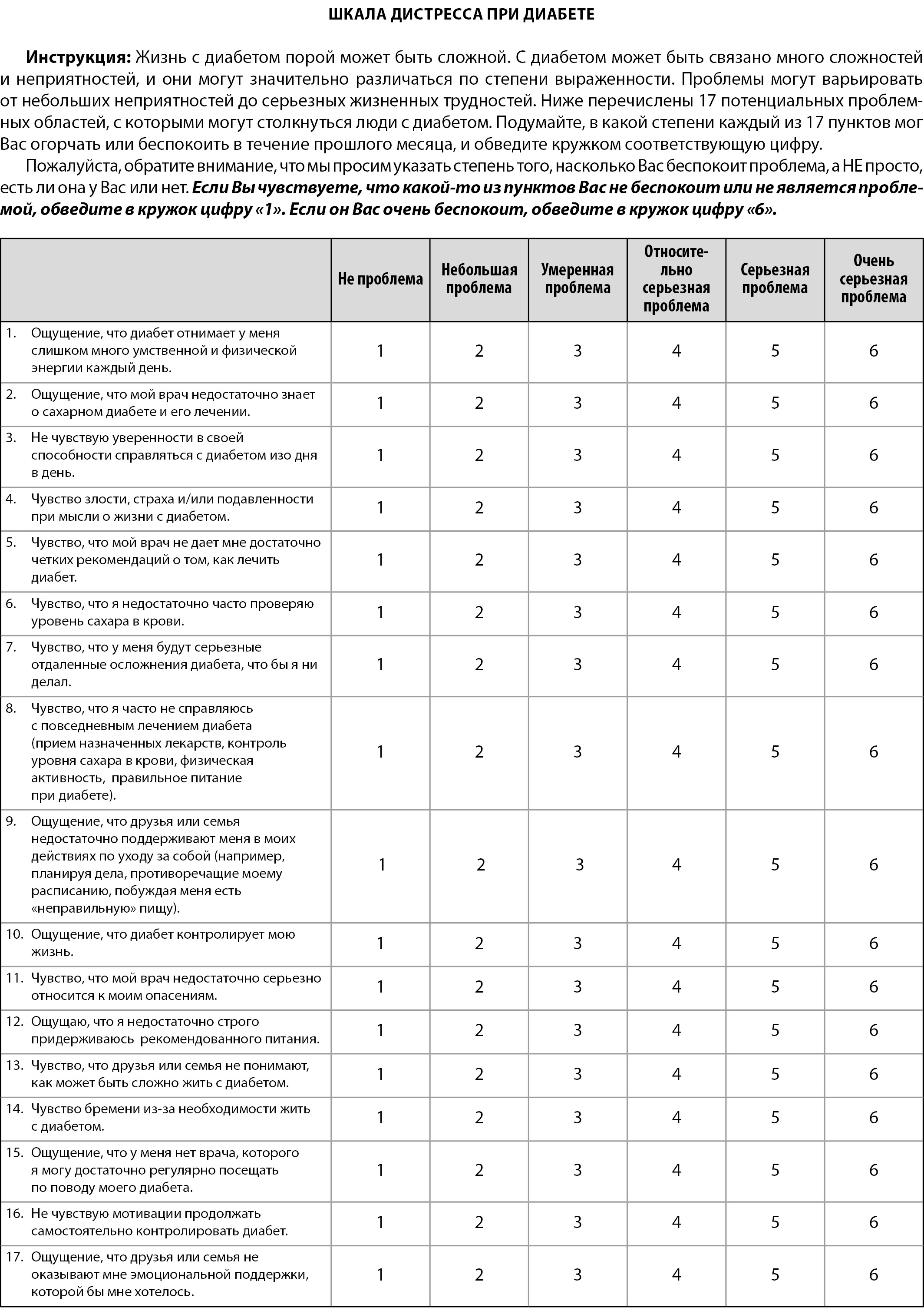 Правильный порядок вопросов в опроснике Шкала дистресса при диабете: