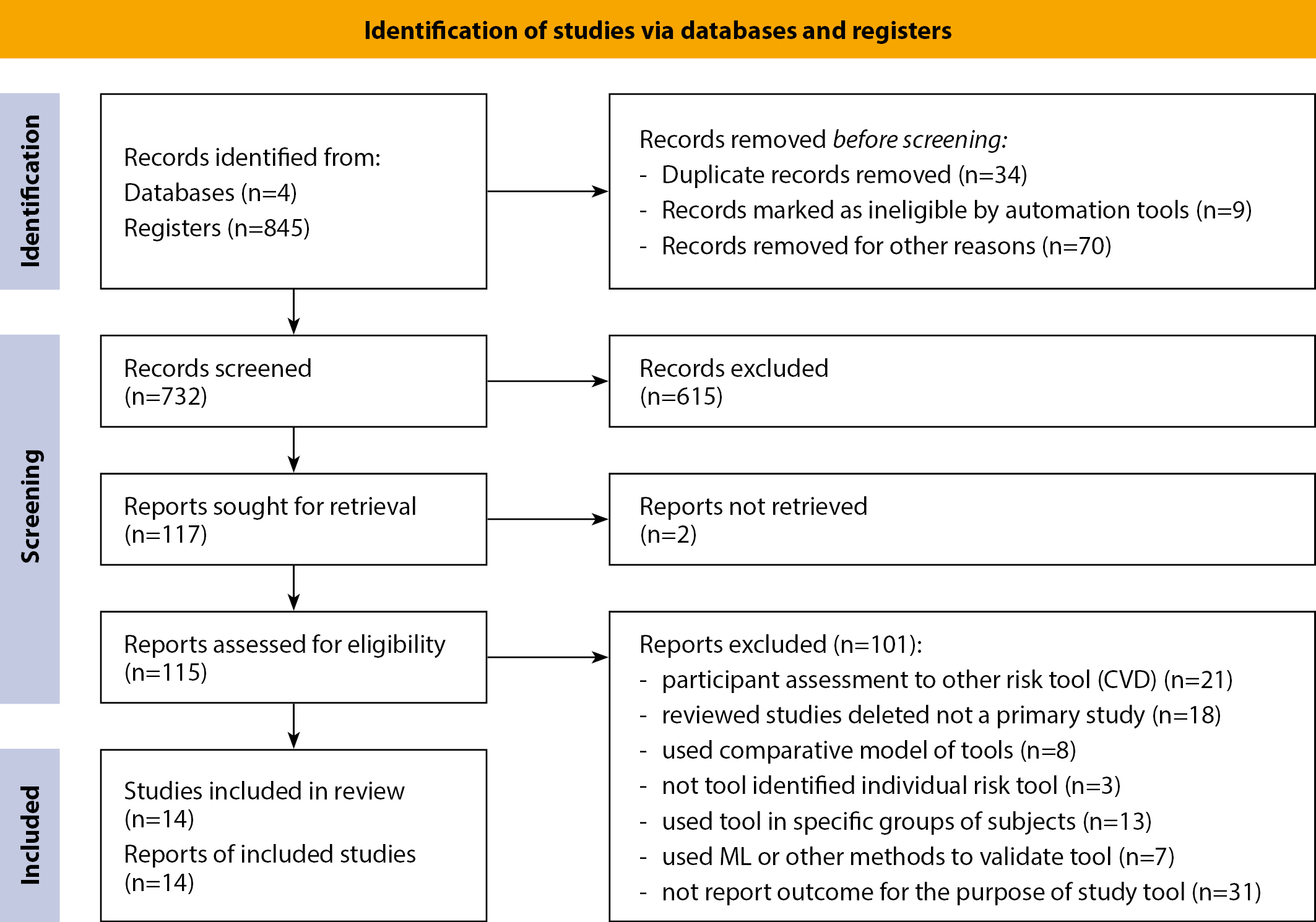 ОБОСНОВАНИЕ/ЦЕЛЬ. Инструменты скрининга риска сахарного диабета (СД) имеют решающее значение для выявления лиц с предиабетом и предотвращения его прогрессирования в СД. Однако систематических обзоров, посвященных таким инструментам, особенно для скрининга предиабета, недостаточно. В данном обзорном анализе рассматриваются характеристики, методы разработки и эффективность инструментов оценки риска СД для выявления предиабета и прогнозирования его перехода в СД.