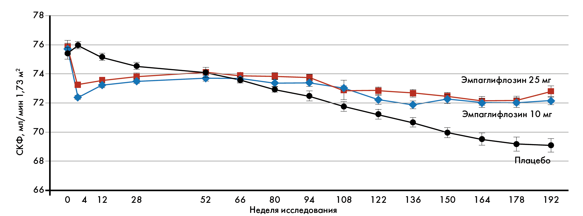 2. Рис. 2. Динамика изменения СКФ в течение исследования EMPA-REG OUTCOME. Адаптировано из [43].