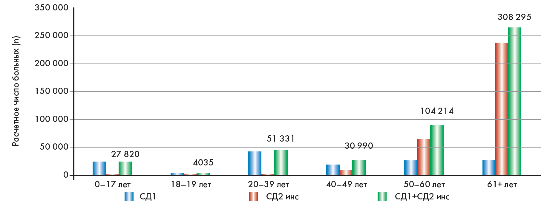 2. Рис. 2. Расчетное число инвалидов среди больных СД, находящихся на инсулинотерапии. | |