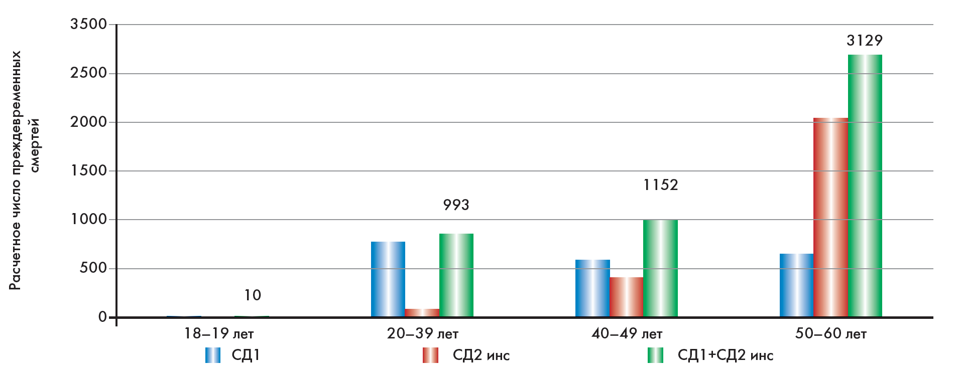 3. Рис. 3. Расчетное число преждевременных смертей среди больных СД, находящихся на инсулинотерапии. | |