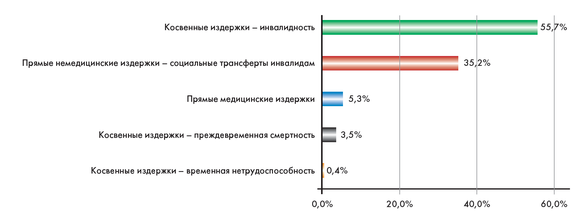 5. Рис. 5. Структура экономического бремени в разрезе основных категорий издержек, 2014 г. | |