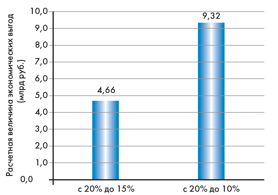 7. Рис. 7. Экономические выгоды от применения глюкометров высокой точности измерения, 2014 г. (млрд руб.). | |