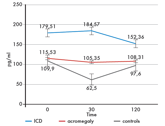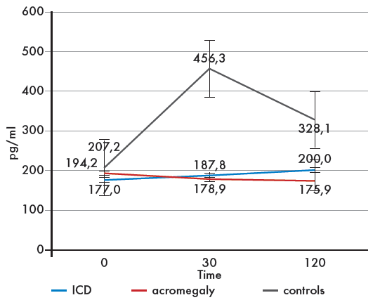 2. Рис. 2. Секреция ГИП у пациентов с БИК и акромегалией.