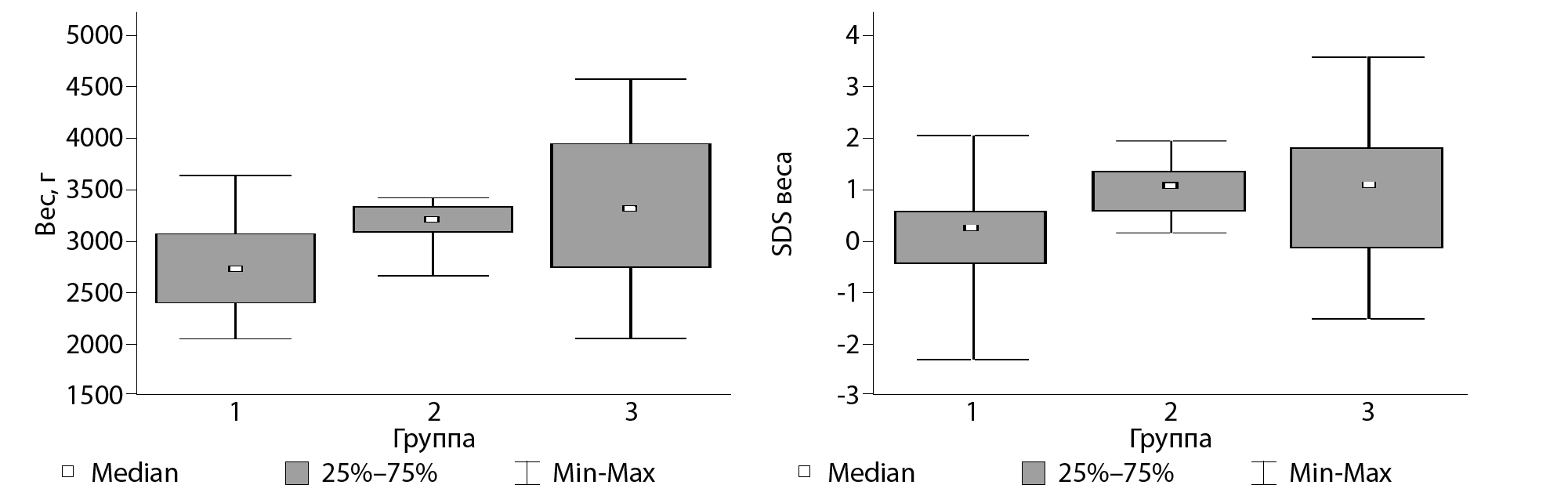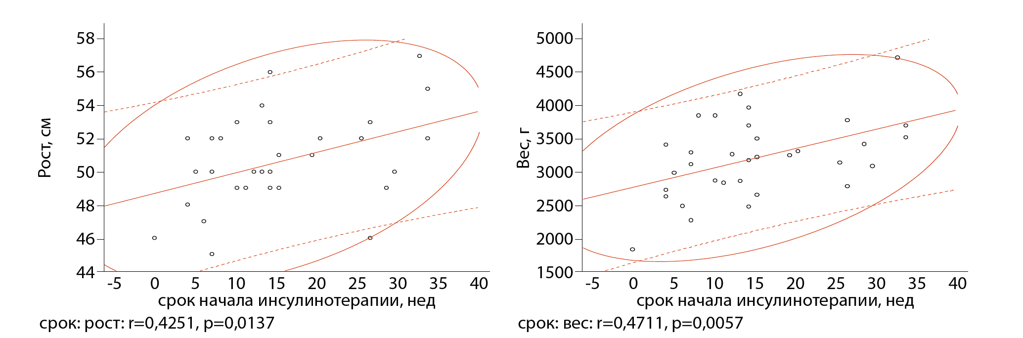 3. Fig. 3. The relationship between the weight and height indices of newborns and the timing of the onset of insulin therapy in pregnant women with GCK / GDD. | |