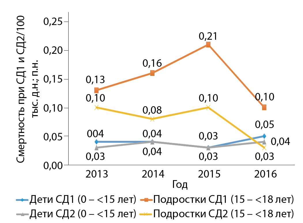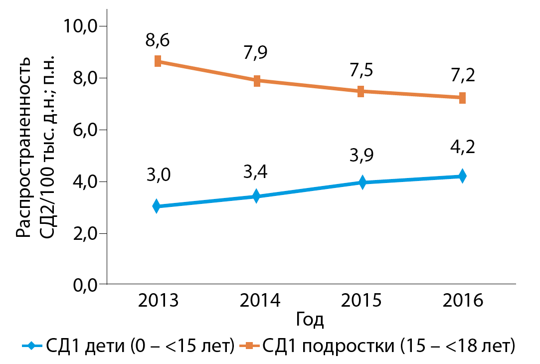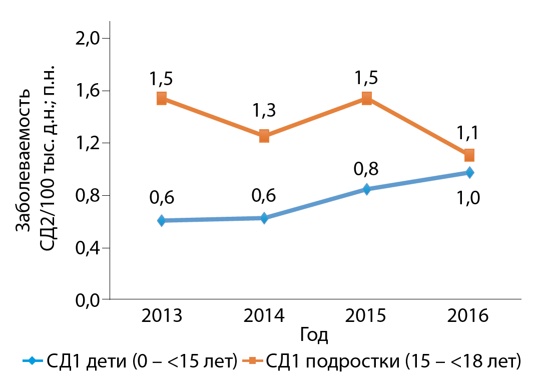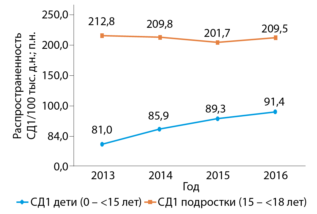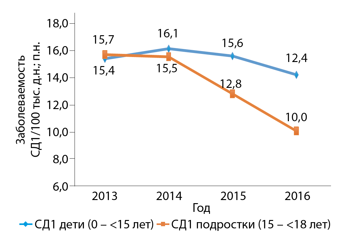 Сахарный диабет у детей и подростков по данным Федерального регистра Российской Федерации: динамика основных эпидемиологических характеристик за 2013–2016 гг.
