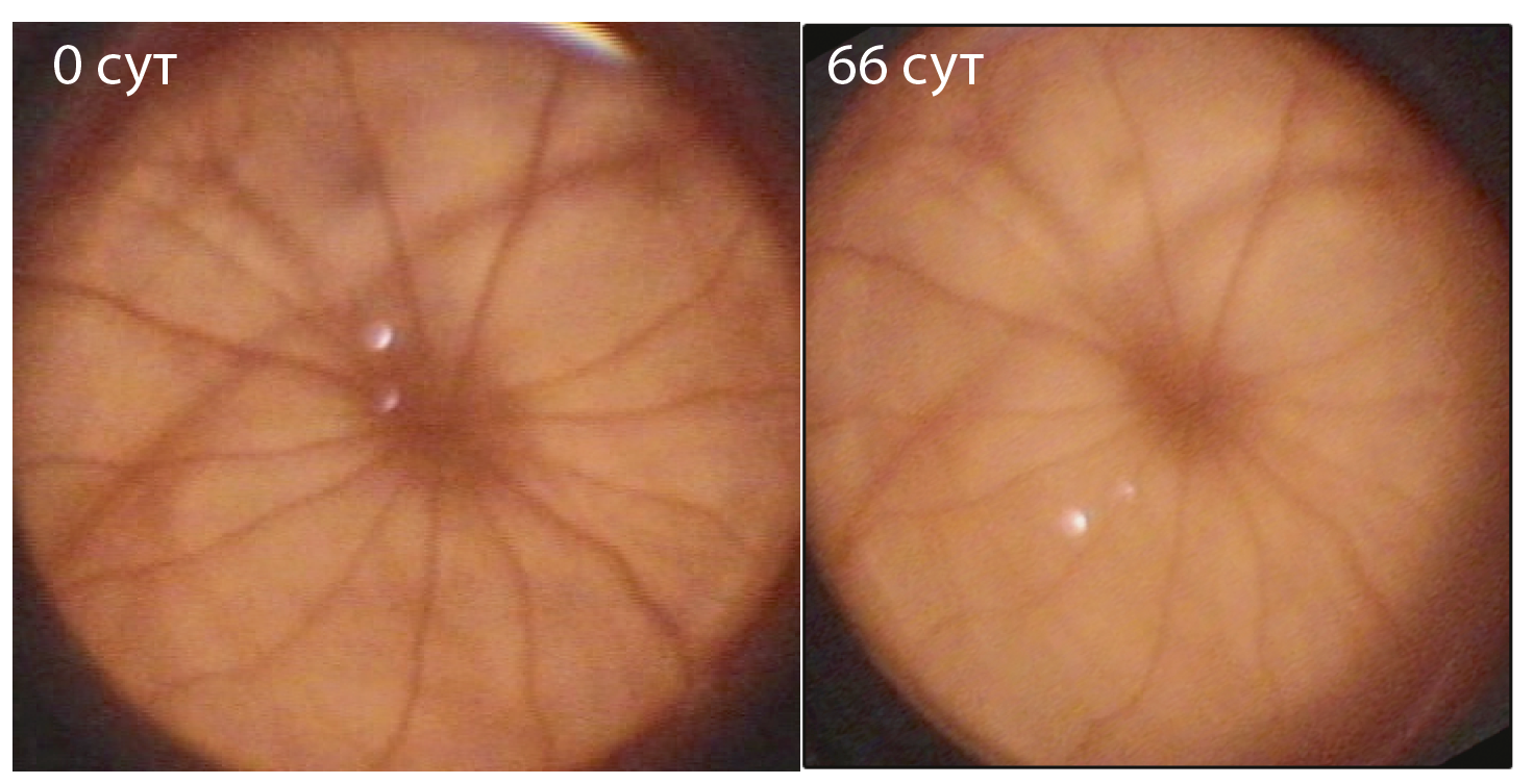 3. Fig. 2. The fundus of the right eye of the rat before intraperitoneal injection of streptozotocin and after 66 days.