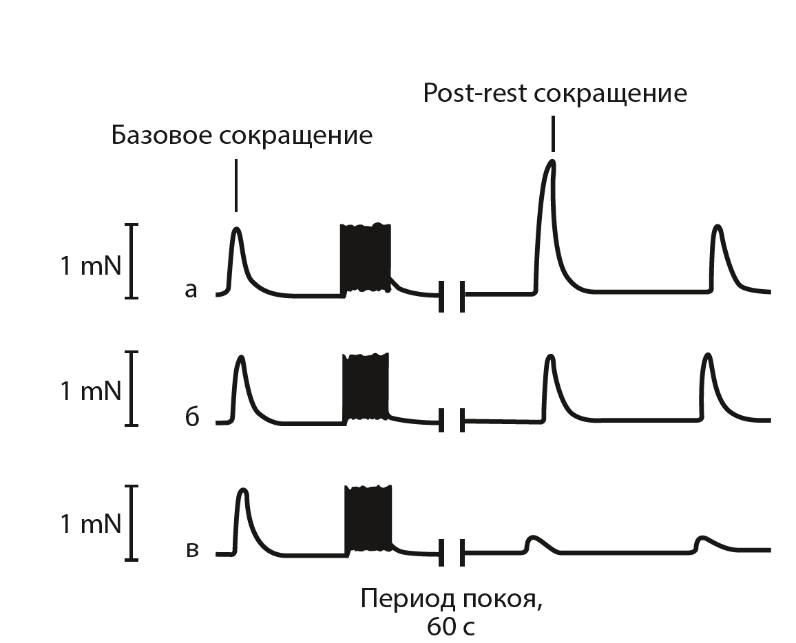 2. Fig. 2. Mechanical restitution of myocardial muscle strips in patients with type I inotropic reaction. | |