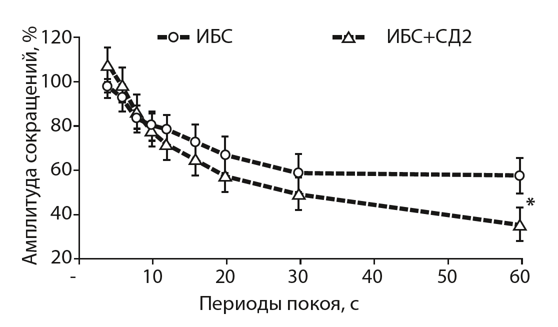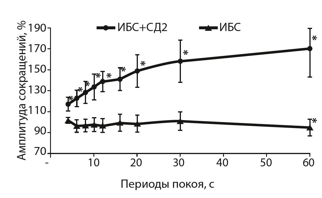 Materials and methods: The work was performed on the heart biopsy of patients with CHD and patients with CHD combined with DM2. The inotropic reaction of myocardial strips on rest periods was assessed. The expression level of Ca2+-ATPase, the activity of enzymes succinate dehydrogenase (SDH) and lactate dehydrogenase (LDH) and the intensity of oxidative phosphorylation processes were determined.