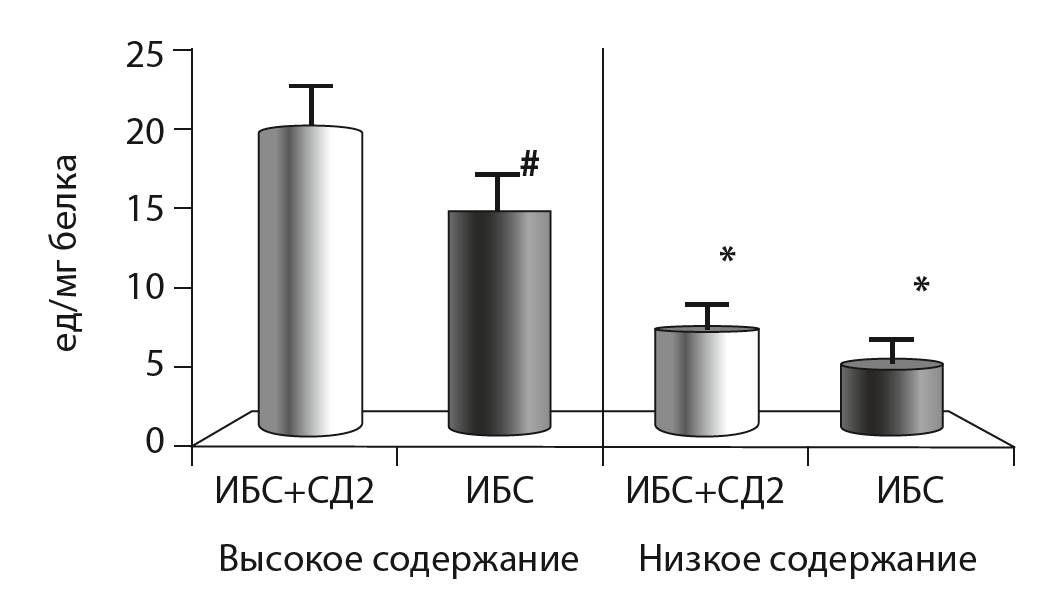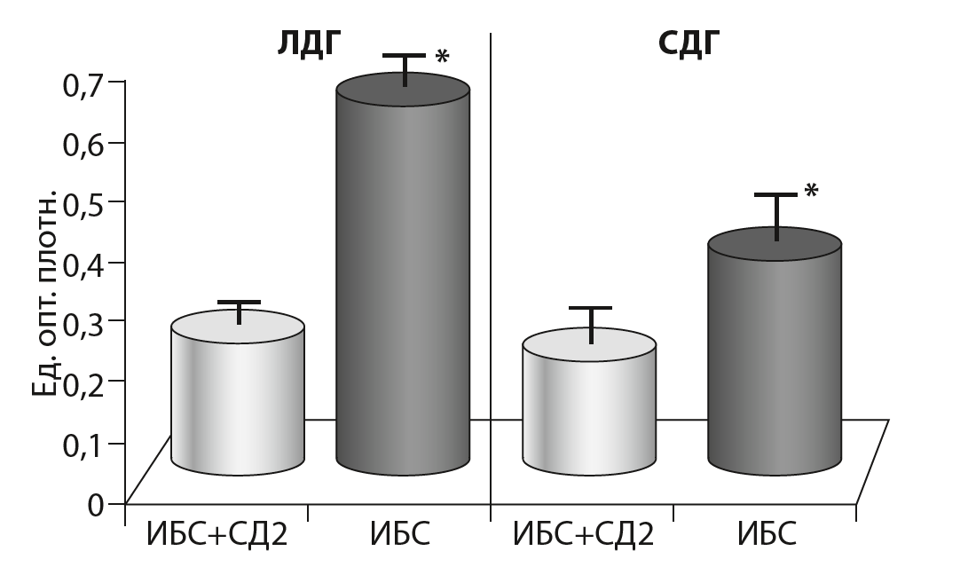 5. Fig. 5. The activity of the enzymes lactate dehydrogenase and succinate dehydrogenase in the myocardium of patients with ischemic heart disease with and without type 2 diabetes. | |