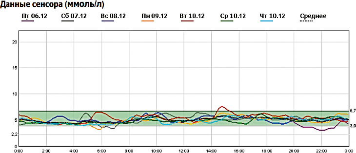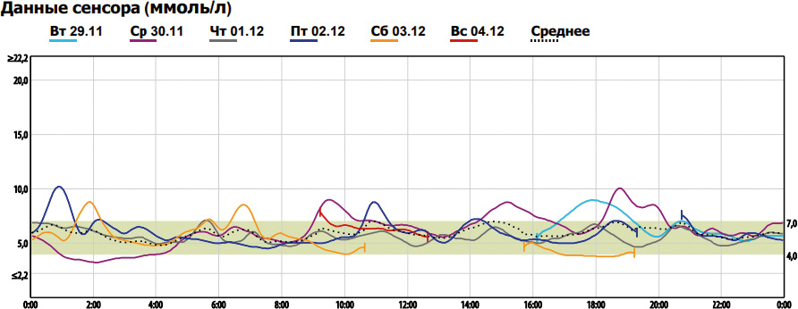 2. Fig. 2. Daily monitoring of glycemia of the patient L. after the appointment of insulin therapy. | |